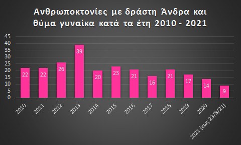 Από το 10 έως και σήμερα 250 γυναίκες έχουν χάσει τη ζωή τους από δράστη Άνδρα.